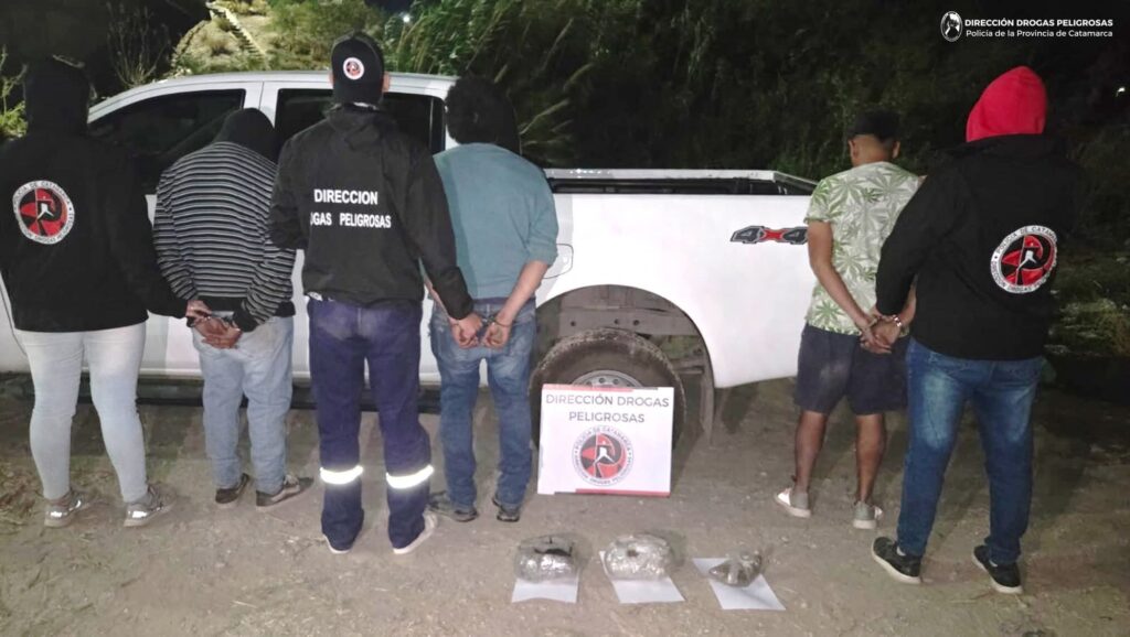 En un nuevo operativo contra el narcomenudeo, personal de la División Inteligencia dependiente de la Dirección Drogas Peligrosas de la Policía de la Provincia llevó adelante anoche un procedimiento que culminó con el secuestro de una importante cantidad de marihuana y la detención de tres sujetos. El accionar policial se concretó en inmediaciones del Río del Valle, a la altura del puente de la avenida Juan Chelemín, donde los efectivos identificaron a tres hombres de 30, 32 y 34 años. Tras una requisa, se procedió al secuestro de dos paquetes compactados y una bolsa de plástico que contenían un total de 2,200 kilogramos de marihuana. Ante el hallazgo, se dio intervención inmediata al Juzgado Federal de Catamarca, que ordenó la detención de los tres individuos y el secuestro del estupefaciente para continuar con las actuaciones judiciales correspondientes. En continuidad con la investigación, los efectivos realizaron un allanamiento en una vivienda ubicada en la localidad de Sumalao, Departamento Valle Viejo, donde se incautaron 364 gramos adicionales de marihuana, 49 semillas de cannabis sativa y una balanza de precisión marca Aspen, elementos comúnmente utilizados para el fraccionamiento y comercialización de drogas. En el domicilio se encontraba una mujer mayor de edad, quien quedó supeditada a la causa judicial, mientras que todos los elementos secuestrados fueron puestos a disposición de la Justicia Federal.Con este procedimiento, la Policía provincial reafirma su compromiso en la lucha contra el tráfico y la distribución ilegal de estupefacientes, fortaleciendo el trabajo conjunto entre las áreas de inteligencia e investigación para desarticular redes vinculadas al narcomenudeo en el Valle Central de Catamarca.