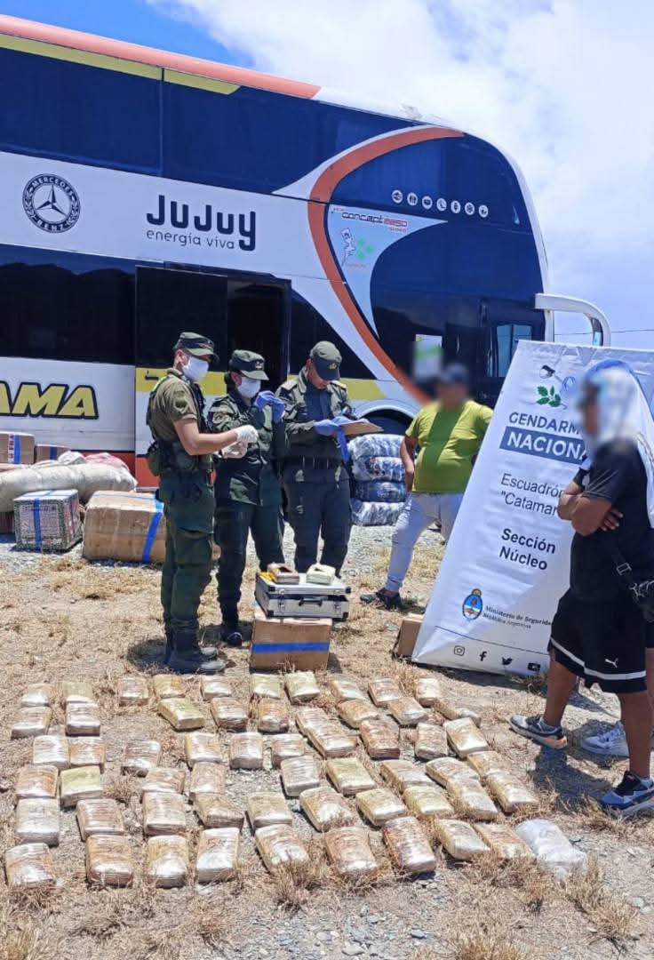 Un importante operativo realizado sobre la Ruta Nacional Nº 38, a la altura del kilómetro 592 en el Acceso Norte a San Fernando del Valle de Catamarca, permitió el secuestro de más de 65 kilos de marihuana que eran transportados en mochilas infantiles dentro de la bodega de un ómnibus “tour de compras” que viajaba desde Salta hacia Mendoza.